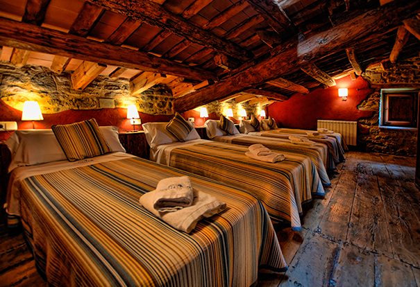 Capacitat per a 20 persones, amb 2 habitacions triples, 3 dobles amb bany propi i 1 Habitació adaptada per a persones amb mobilitat reduïda. I 2 habitacions de 4 i 5 llits per als més petits.